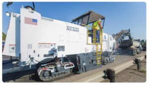 Cold planing, also known as asphalt milling, is the removal or milling up of an existing asphalt surface to provide a smooth, uniform base for resurfacing. It ensures smooth and uniform roadways. Saunders notes that in addition to motorway rehabilitation and milling, the RX-600ex’s applications include urban road projects. Its lighter weight and versatility ensure manoeuvrability in urban locations. It is also suitable for lane profiling and maintenance.